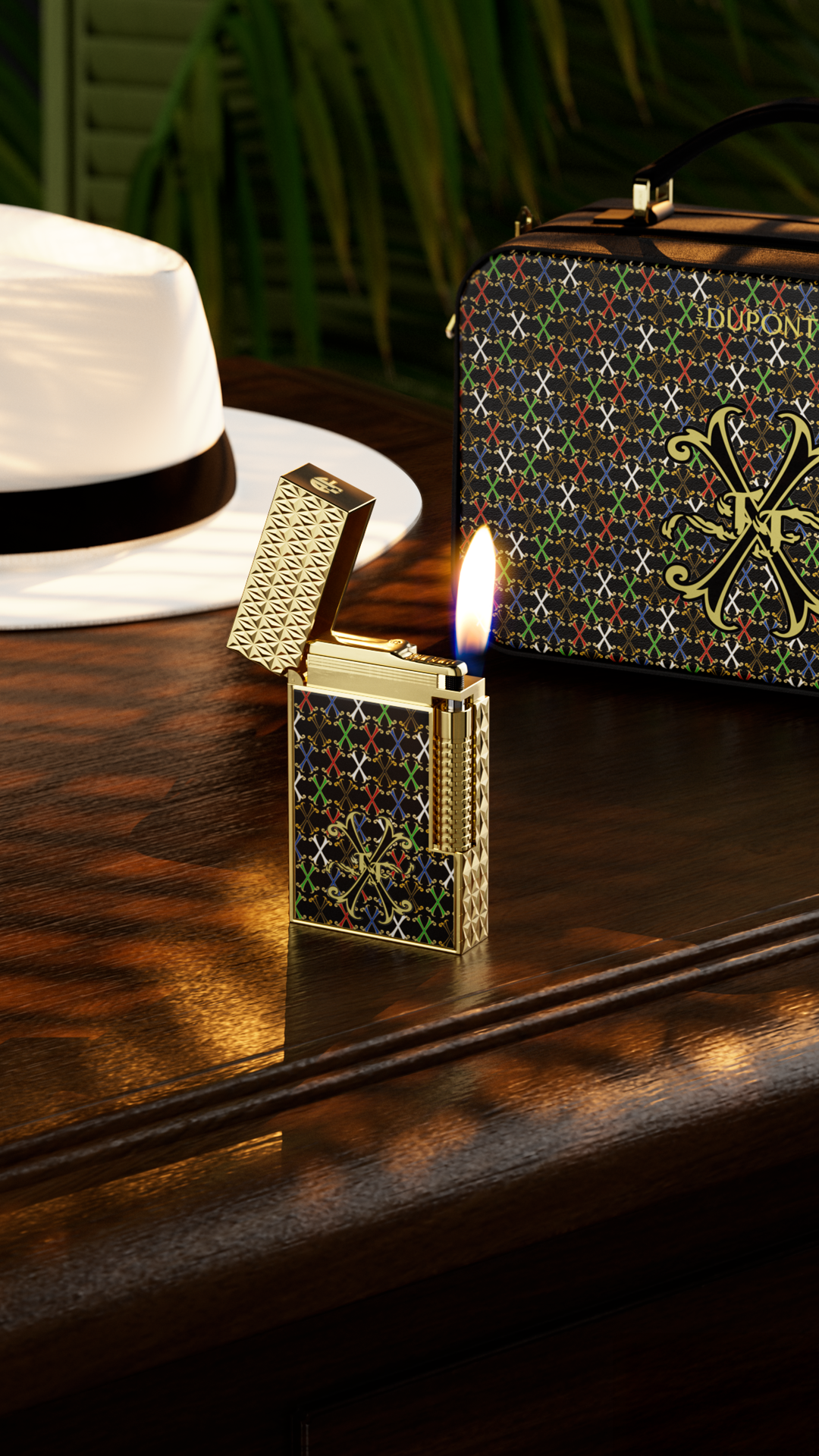 Le savoir-faire d’orfèvre de S.T. Dupont trouve ici une nouvelle expression à travers deux icônes : le briquet Ligne 2 et l’instrument d’écriture Line D Eternity. Habillés de laques précieuses et de détails dorés, ils reprennent le monogramme « X » comme un sceau d’excellence. Chaque ligne, chaque guillochage évoque la chaleur du feu maîtrisé et la précision du geste artisanal.