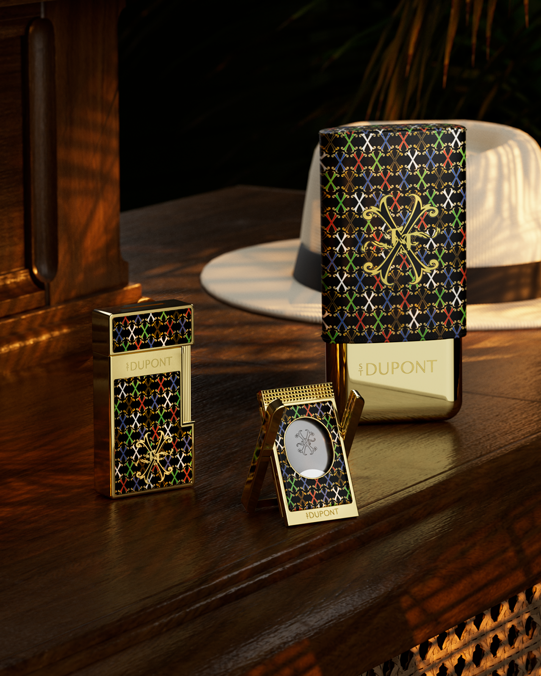 Au cœur de cette collaboration se trouve un monogramme inédit, le « X », directement inspiré des bagues colorées emblématiques des cigares Fuente. Décliné en nuances profondes et reflets métalliques, il traduit la force et la richesse de cette alliance. Ce motif puissant incarne la créativité commune aux deux Maisons : celle qui transcende le temps, entre tradition et modernité, audace et raffinement.
