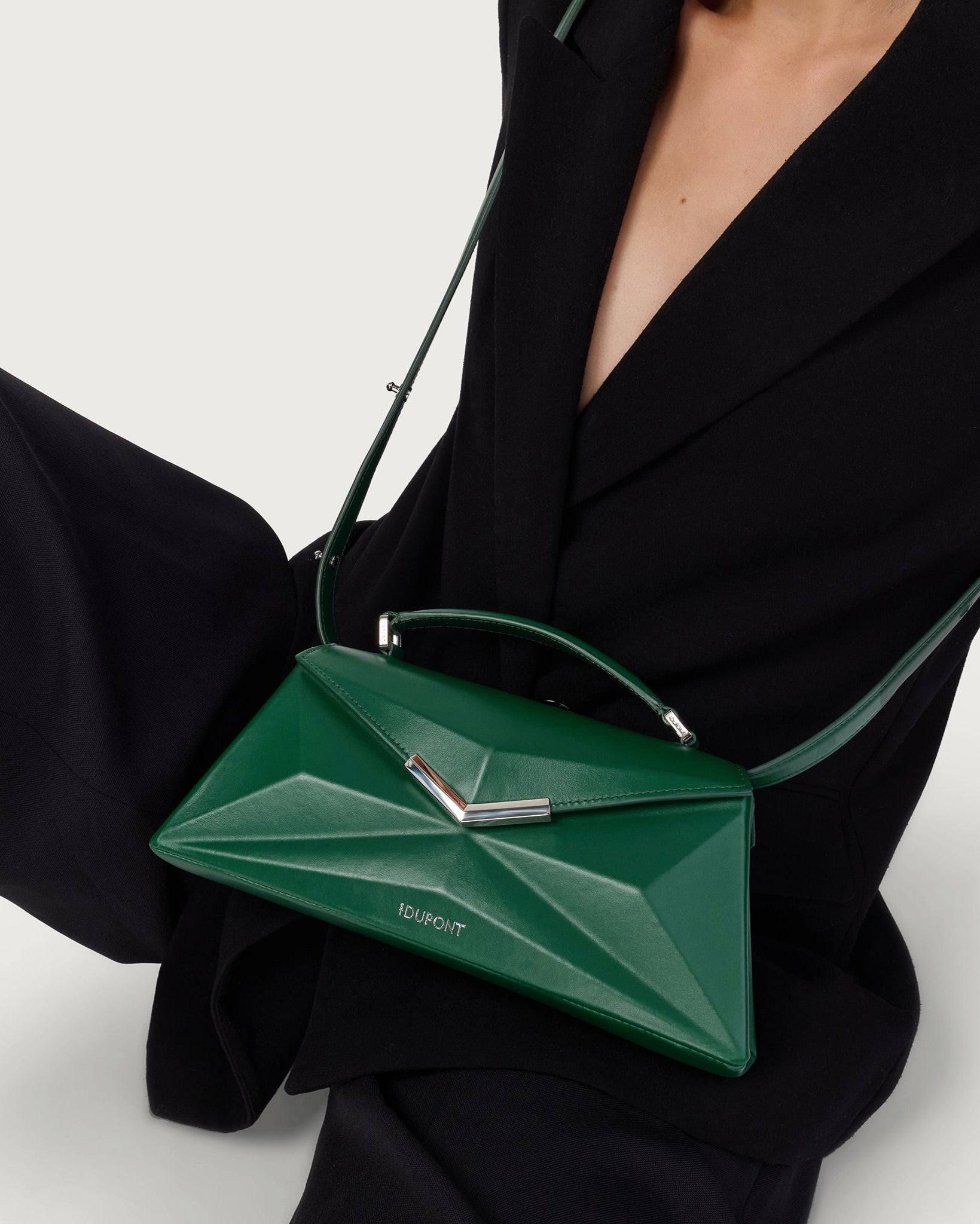 Chaque X-Bag Baguette est confectionnée dans les ateliers de la Maison à partir de cuirs sélectionnés pour leur souplesse et leur éclat. Les artisans Dupont associent techniques traditionnelles et innovations contemporaines afin de donner vie à une texture sensuelle et lumineuse. Les bordures ton sur ton, rehaussées de surpiqûres précises, témoignent du soin apporté à chaque détail.