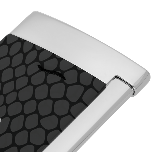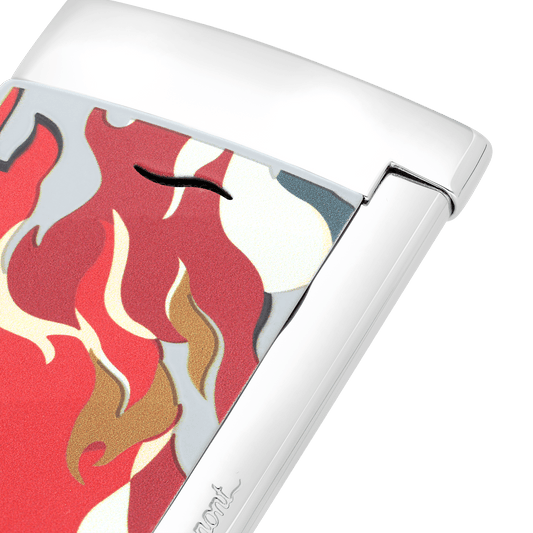 Collection Briquets de luxe Slim 7. De l'utilité d'un accessoire aussi fin qu'ergonomique. Pour allumer votre cigare avec le luxueux briquet Slim 7 de S.T. Dupont, tenez-le à quelques centimètres de la flamme et tournez-le avec tact pour en allumer délicatement le pourtour du pied. Cette distance est nécessaire afin d'obtenir un allumage harmonieux de votre cigare ou de tout autre objet. La simple flamme torche du Slim 7 est si puissante qu'elle résiste au vent. Léger, plat et fin, ce luxueux briquet est d'une prise en mains fluide. Il se range facilement dans un étui à briquet S.T. Dupont qui le préserve en toute sécurité dans votre poche ou votre sac. Sa différence se ressent... Se l'approprier et le manipuler vous confère de la confiance, un sentiment d'assurance concourant à votre bien-être. D'une élégance raffinée, chaque briquet de la collection Slim 7 véhicule l'esprit d'excellence de la Maison au remarquable savoir-faire. Esthétisme, ergonomie et raffinement se retrouvent dans ce briquet S.T. Dupont qui inspire et évoque respect et considération autour de vous. Et le prestige devient… Slim 7 est un objet remarquable de votre quotidien, conçu par des artisans à la prestance exceptionnelle. La solide réputation de la Maison n'a d'égal que l'admiration suscitée par chacune de ses créations dont ce prestigieux allume-cigare. Extrêmement plat, il se dote d'une flamme tout aussi plate et ne pèse que 45 gr pour 7 mm. Offres prestigieuses et variées Finition or brossé intégral, métal brossé intégral, gun métal brossé, chrome brossé, chrome brillant intégral, space white ou un autre ? Visitez nos différents briquets de prestige et optez pour la création originale la plus proche de votre personnalité. Octroyez-vous ou offrez un des objets les plus raffinés.
