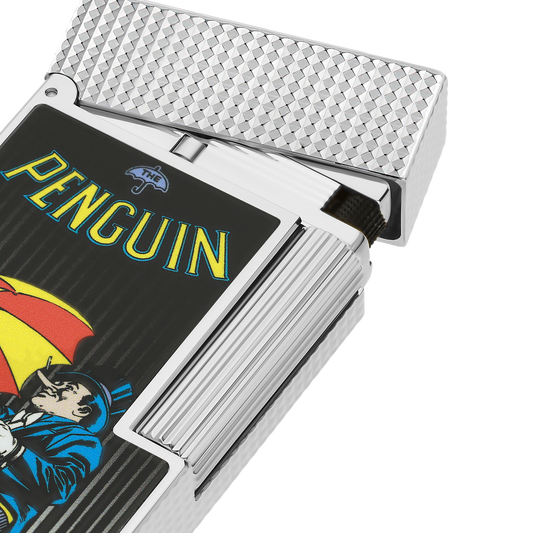 Maître incontesté du crime et de la manipulation, le Joker fascine autant qu’il terrifie. Son rire glaçant, ses jeux de cartes piégés et son goût pour le chaos sont inscrits dans la mémoire collective, en faisant l’un des personnages les plus captivants de DC Comics. S.T. Dupont lui rend hommage à travers des créations où son univers graphique s’anime avec élégance. Spirales hypnotiques, références à ses cartes de jeu et typographie exubérante s’invitent sur des objets d’exception, capturant toute la démesure et la provocation du plus grand adversaire de Batman.