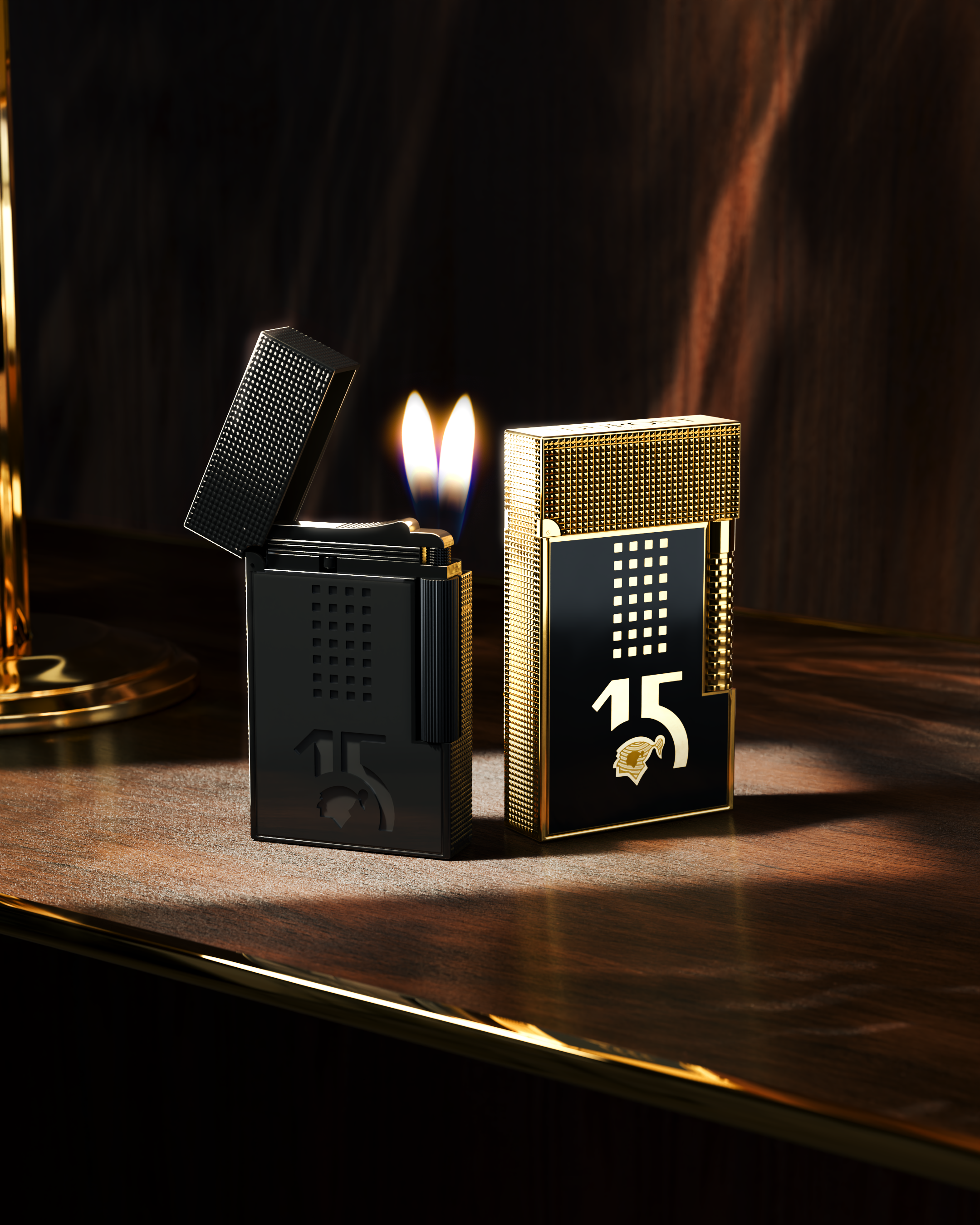 qui reprend et mêle les signatures Behike à celles, centenaires, de S.T. Dupont. La pointe de diamant donne un nouvel éclat au célèbre carreau Cohiba. Tous deux habillent Le Grand Dupont, entre laque noire et finitions dorées, comme celles, reprenant la tête de Taíno, du logo des 15 ans de Behike. Ligne 2 fait la part belle à un autre savoir-faire S.T. Dupont, la laque, qui s’exprime en noir profond pour ce briquet avec beaucoup de personnalité