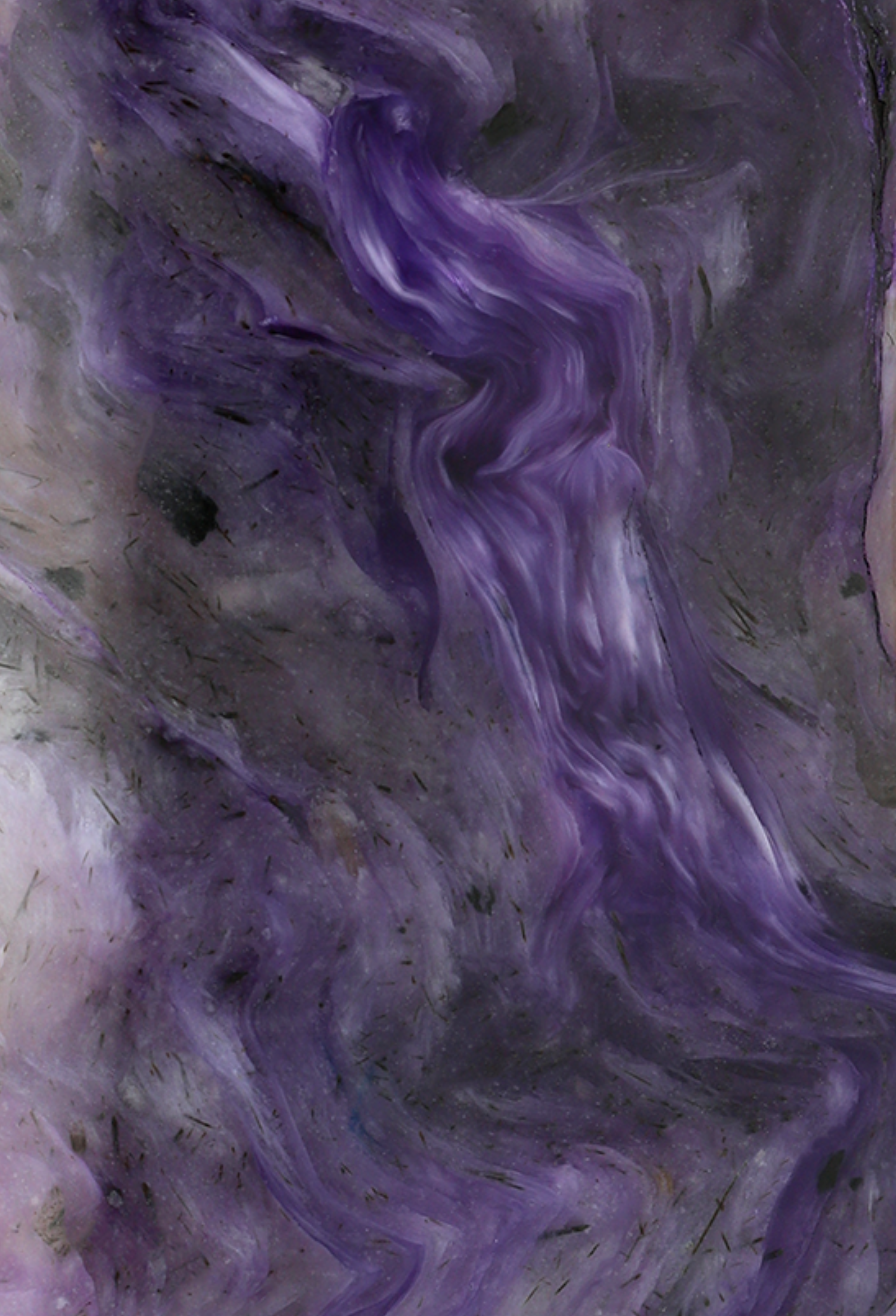 Provenant des confins de la Sibérie, la Charoïte est une pierre rare aux volutes envoûtantes de violet et de lilas.