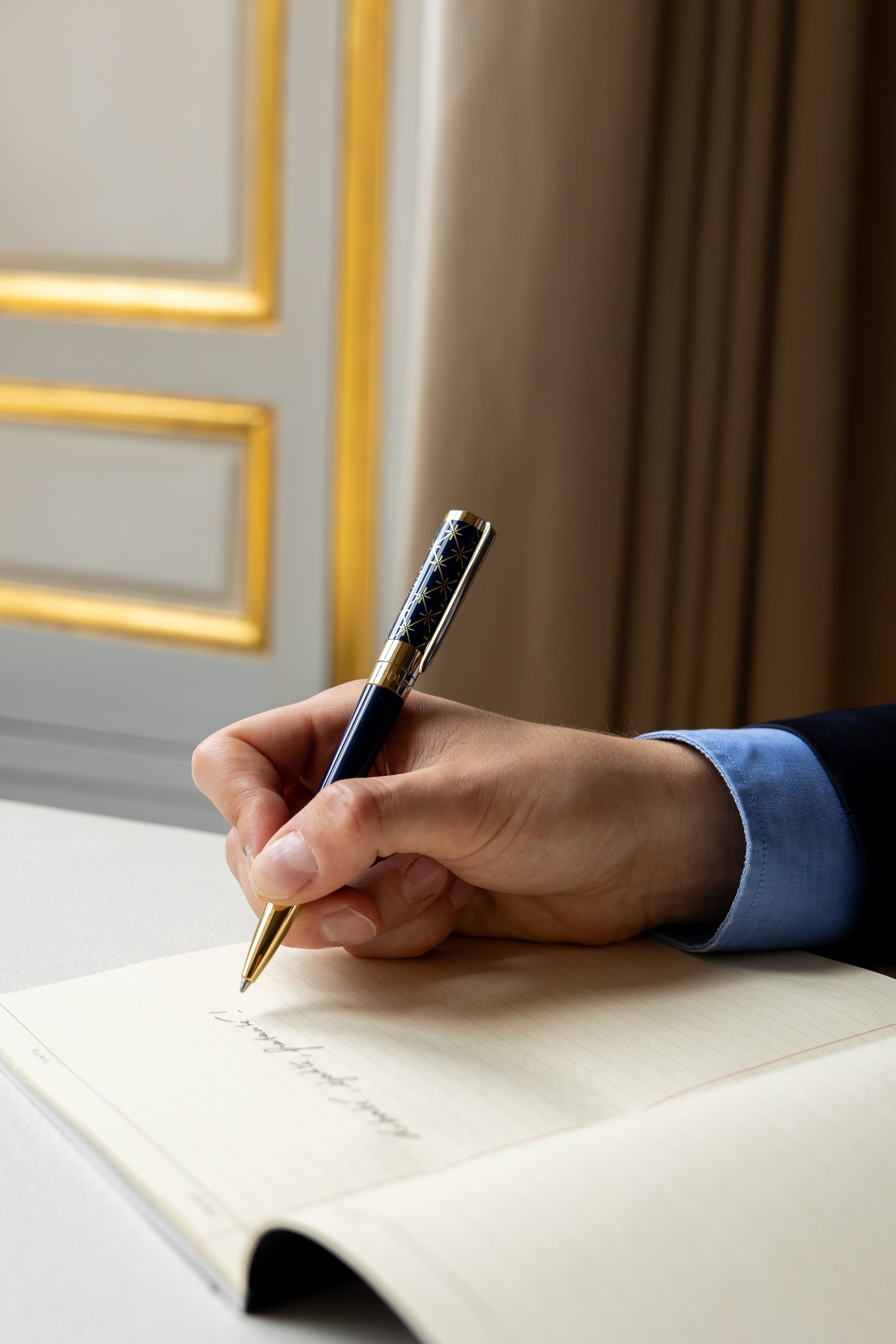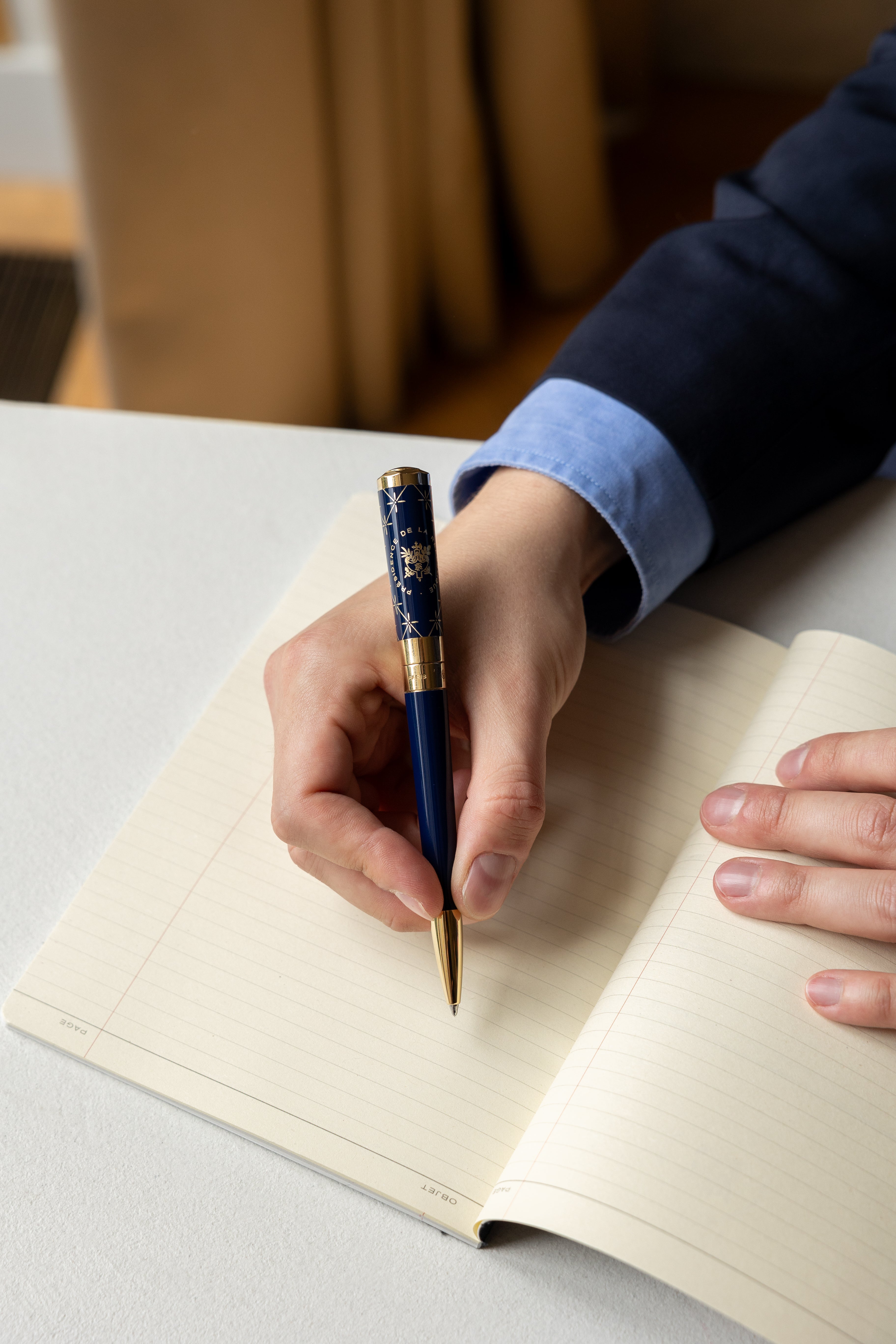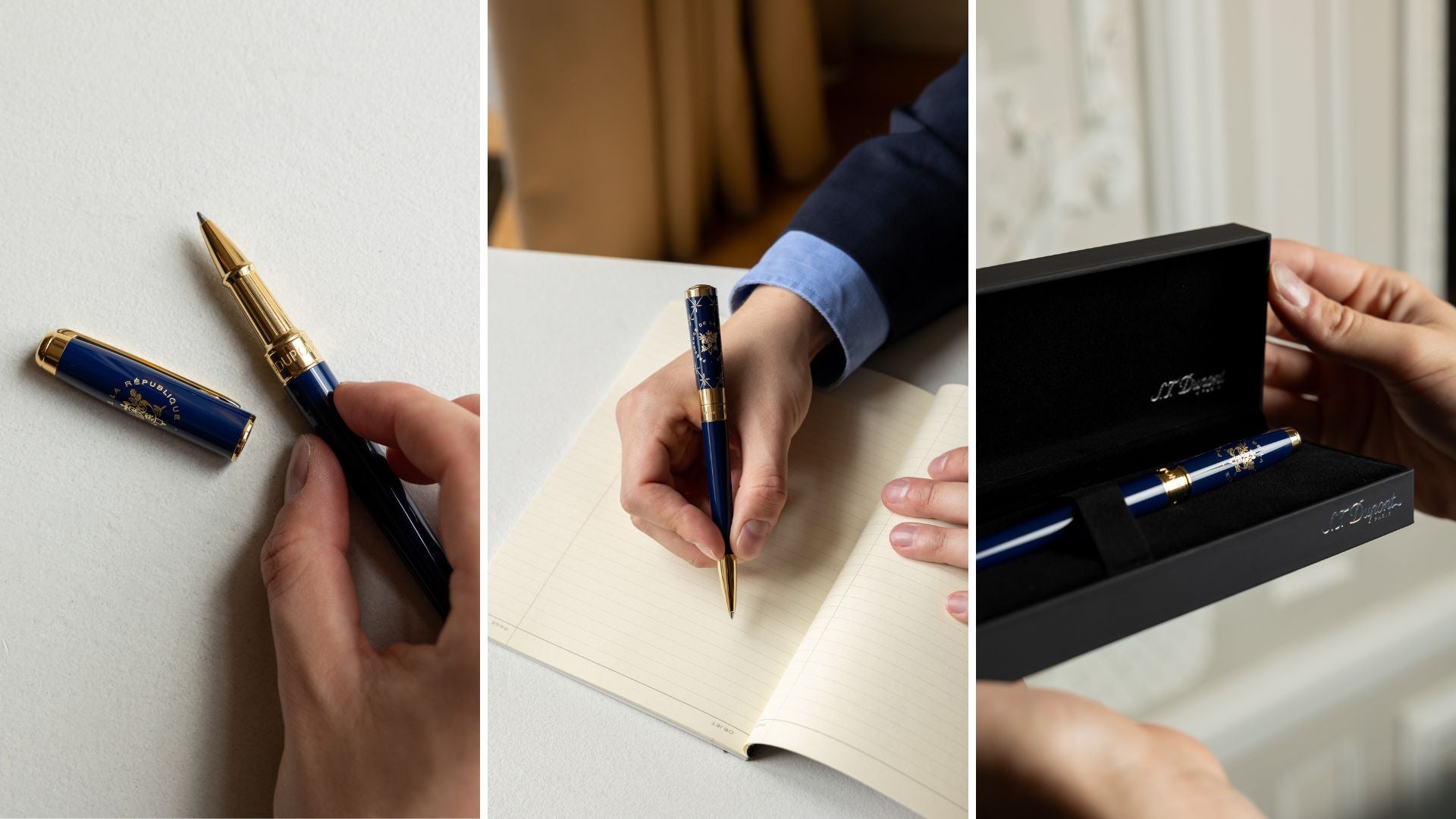 Conçu dans les ateliers de Faverges, en Savoie, le stylo Liberté bille se pare d’une laque bleu profond, inspirée du drapeau français, illustrant à merveille la technique emblématique de laquage de S.T. Dupont.